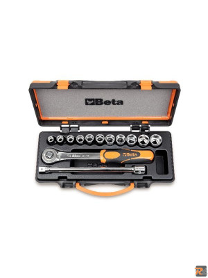 11 chiavi a bussola poligonali e 2 accessori in cassetta di lamiera