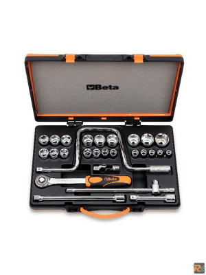 21 chiavi a bussola poligonali e 6 accessori in cassetta di lamiera